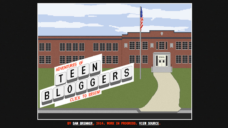 For my thesis project at ITP, I built The Adventures of Teen Bloggers, a creative-nonfiction graphic adventure that lets you become a real teen blogger from the heyday of LiveJournal.