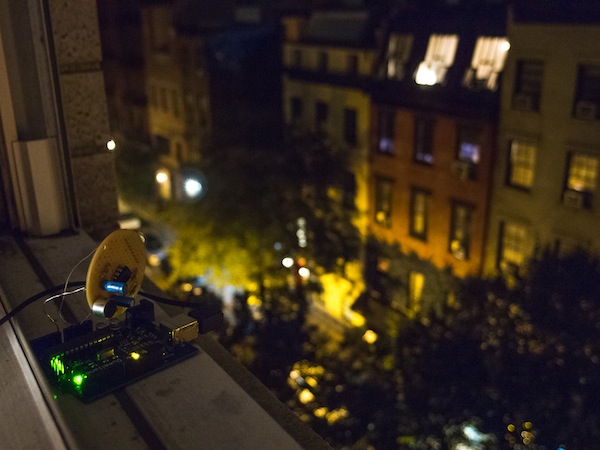 The other day, I was talking with Jay about tracking street noise. I thought it would be neat to record a video of the street for however many hours and giving it away to anyone who wanted to extract data from it. Taxi frequency, direction of pedestrians, or noise level, for example. I mentioned how the noise from the street was impacting my sleeping, Jay said something about tracking sound, and at that moment, voilà! An idea was born.